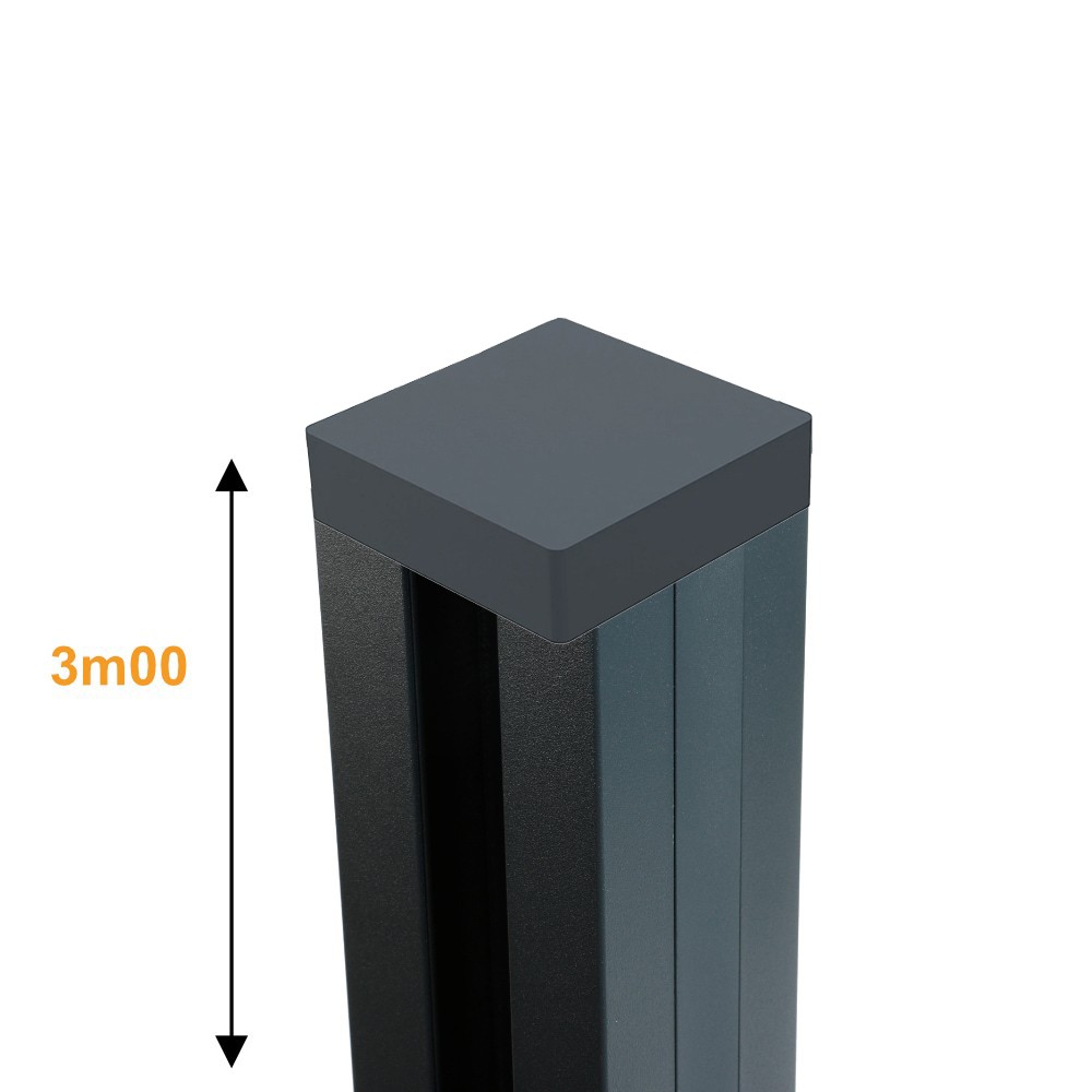 Ce poteau est proposé dans une finition thermolaquée et texturée en anthracite RAL 7016, assurant un design moderne et une grande durabilité.