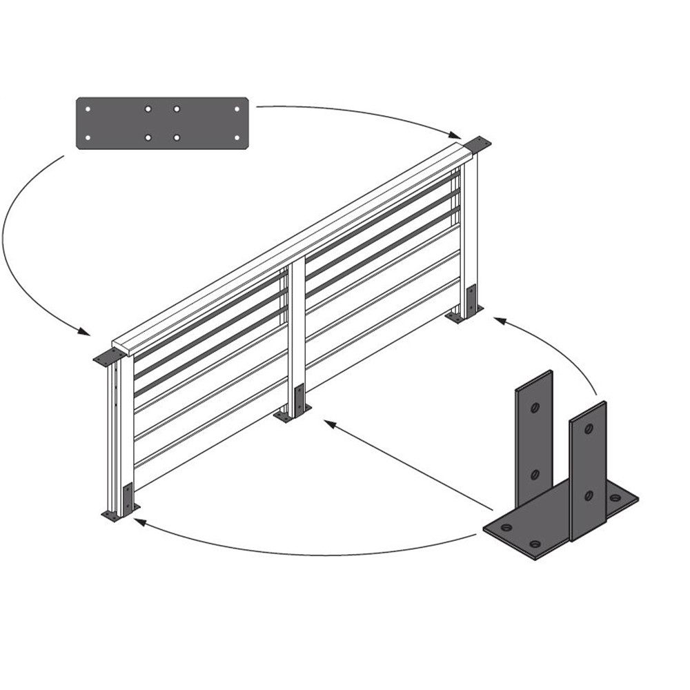 Les angles ou les jonctions doivent être réalisés en assemblant des demi poteaux entre eux à l'aide de vis inox. 2 demi poteaux permettent de former une jonction ou un poteau de fin, 3 demi poteaux permettent de créer un angle à 90°.