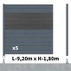- Poteaux gris 75x75x1840mm avec platines à visser