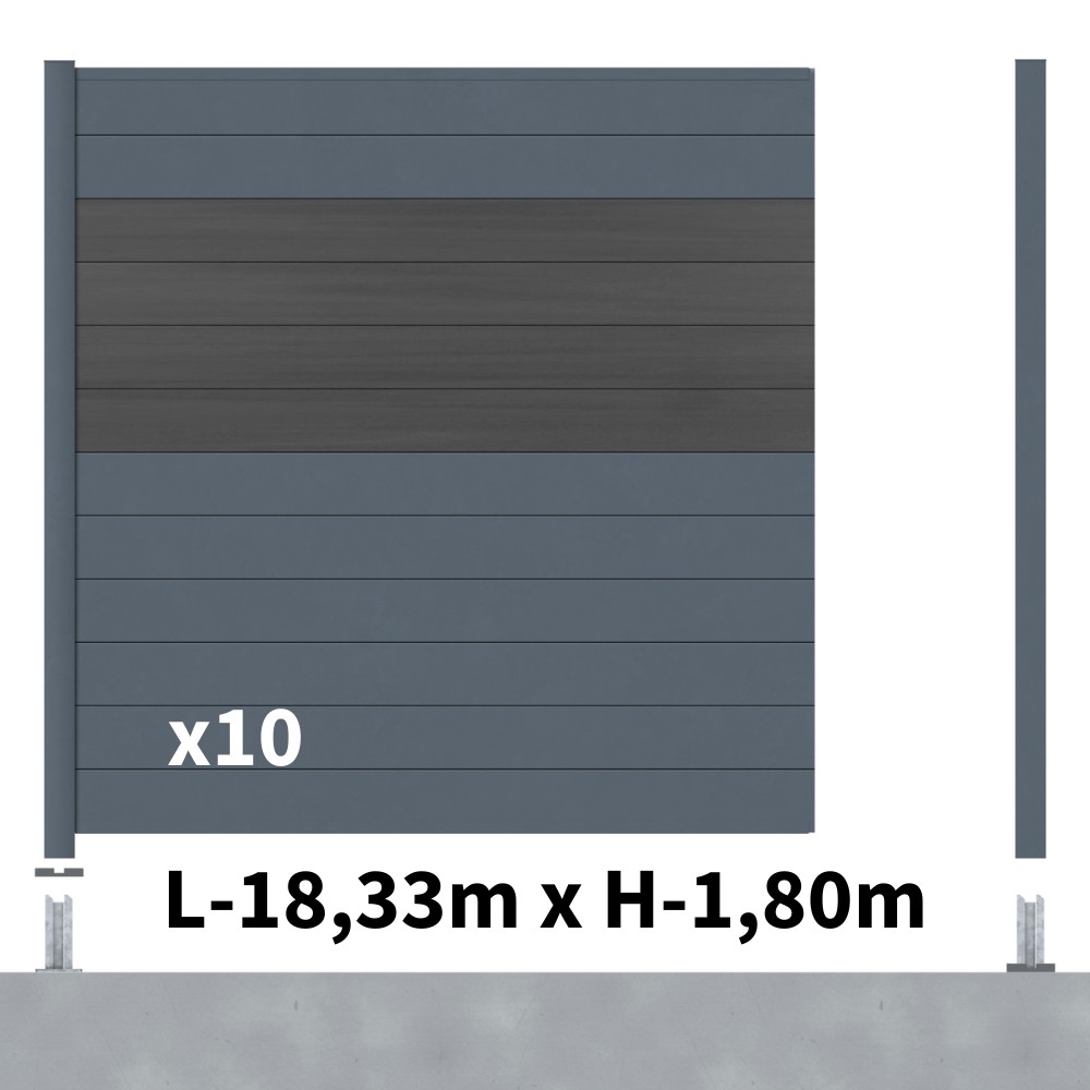 Optez pour le kit clôture aluminium poteau sur platines - BAHIA & CRUZ Ardoise H-1,8m, un ensemble complet pour délimiter votre extérieur avec style. Disponible dans des longueurs de 5,55 à 18,33 mètres, ce kit comprend :