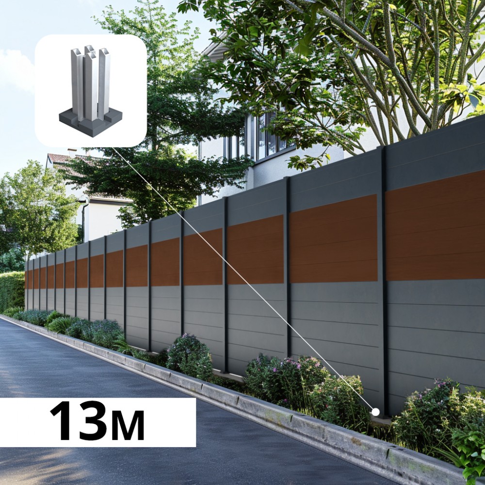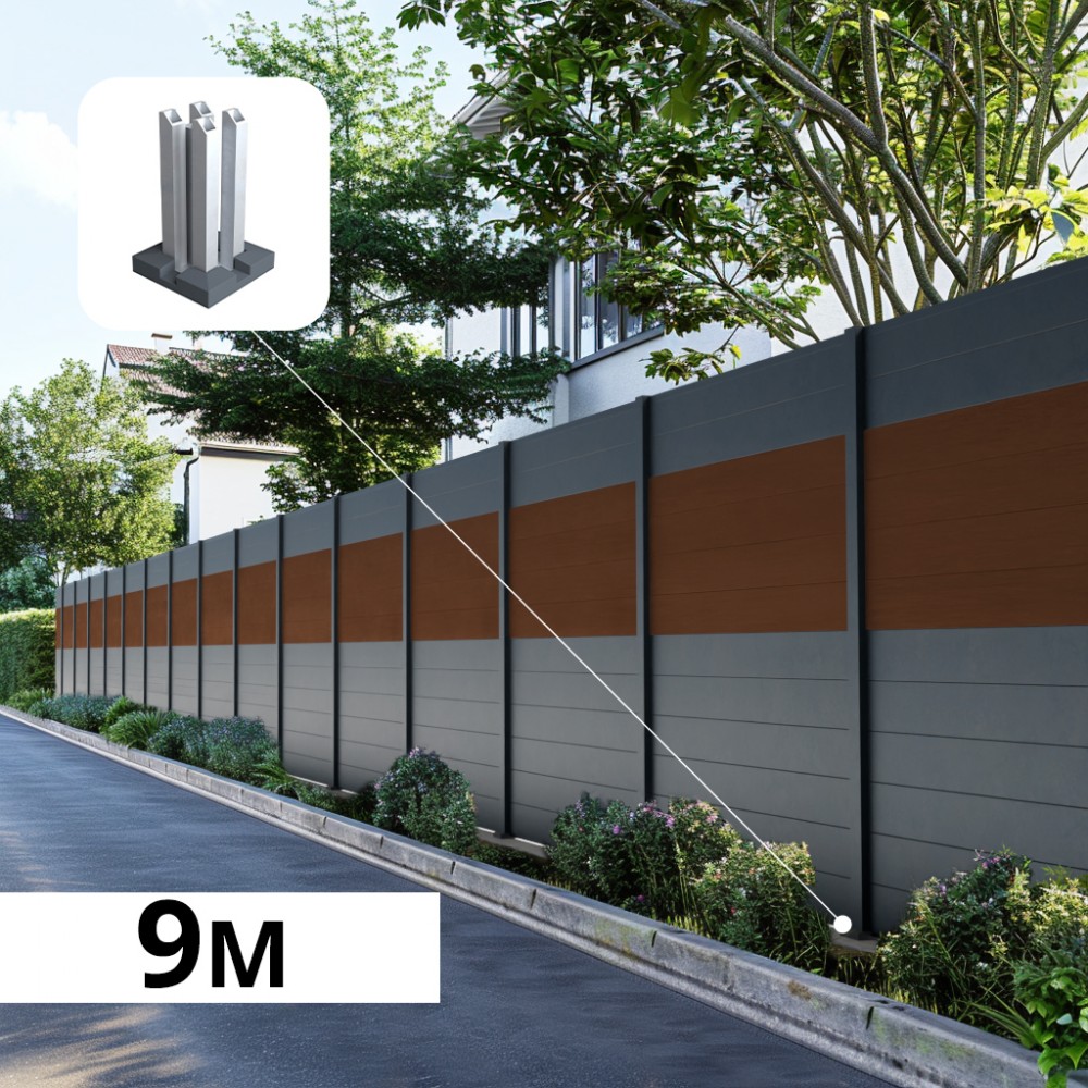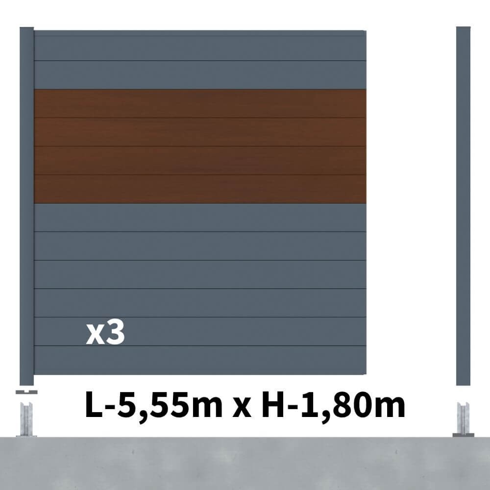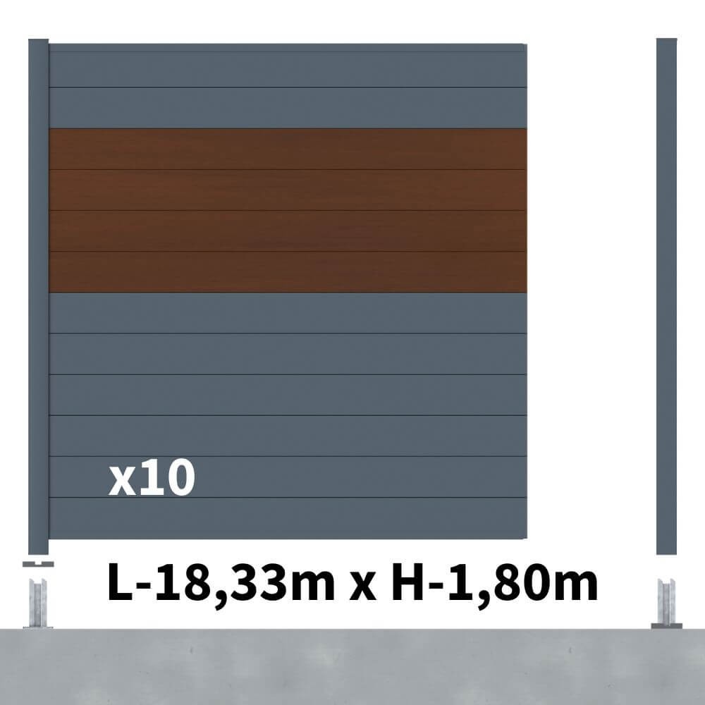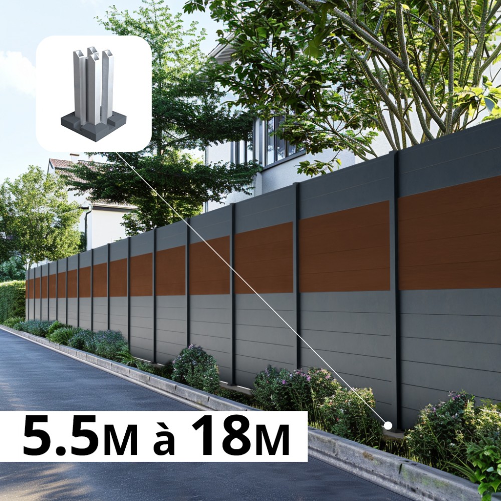 Optez pour le kit clôture aluminium poteau sur platines - BAHIA & CRUZ Ipé H-1,8m, un ensemble complet pour délimiter votre extérieur avec style. Disponible dans des longueurs de 5,55 à 18,33 mètres, ce kit comprend :