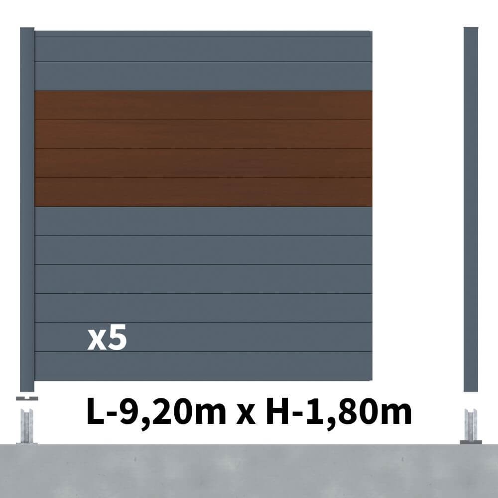 Combinant lames BAHIA en aluminium et CRUZ en composite co-extrudé avec des poteaux en aluminium, ce kit résiste aux UV, à l’humidité et aux insectes, tout en arborant une teinte ardoise élégante. Un simple rinçage suffit pour préserver son éclat. Haute de 1,8 m, cette clôture offre une robustesse garantie 20 ans et un design intemporel.