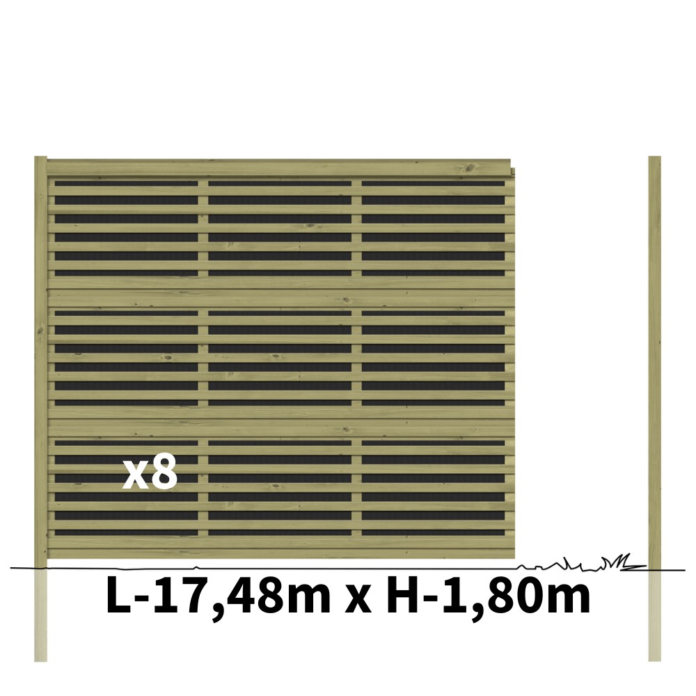 Nos kits clôture anti-bruit SILENZO ABSORB, avec une longueur de 6,63 à 19,66 mètres et une hauteur de 1,80 mètre, sont parfaits pour protéger votre propriété avec élégance et efficacité.