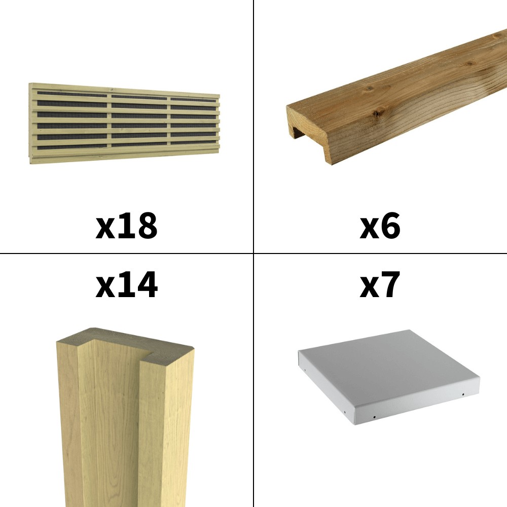 | Longueur | Panneaux ABSORB | Demi-poteaux | Chapeaux de poteaux | Couvertines |
