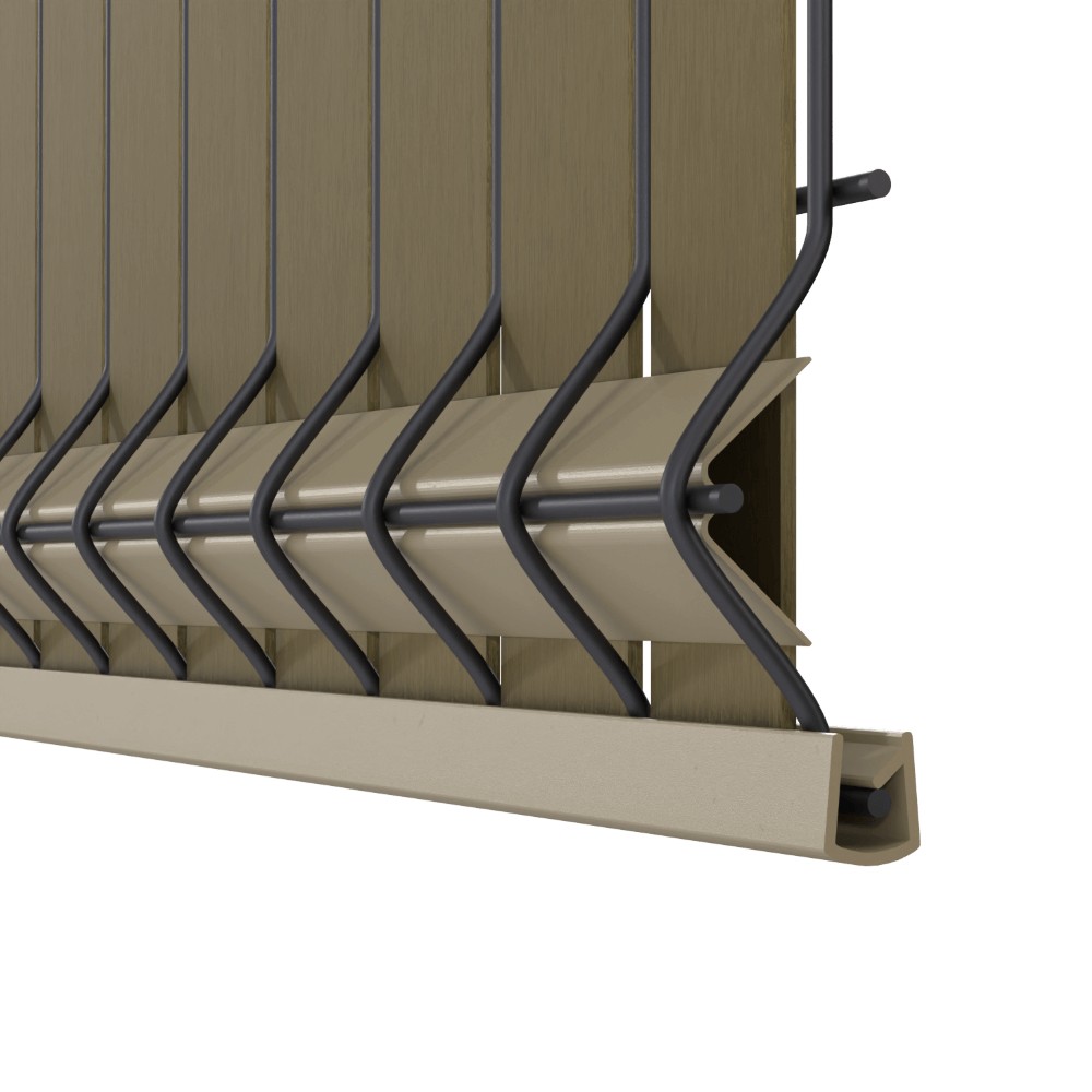 Trois coloris sont proposés (brun beige et gris), pour s'accorder à la couleur du treillis soudé et à l'environnement. Les teintes sont chaleureuses, grâce à leur finition brossée imitant le bois.